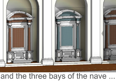 In the end you want to do "just enough" to convey the message you intend. In this case it is a question of finding a balance between abstraction and reality that will allow us to ask useful questions about the building: how it is built, what it meant to the community that used it, how does it compare to say St Peter, Walworth built by John Soane a century or so later. My initial interpretation of the bays was that the arches extended into cross-walls carrying beams that run lengthways along the nave. But I think the span is too large and the continuity of the roof void impeded. Who knows? It would be wonderful to venture up into that space.